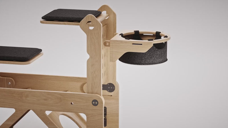 Our patented foldaway system, proudly designed in Australia. Made from premium plywood, this bench tower is the most sophisticated cat furniture on the market. A first-of-its-kind design that considers you, your home, and your cat.